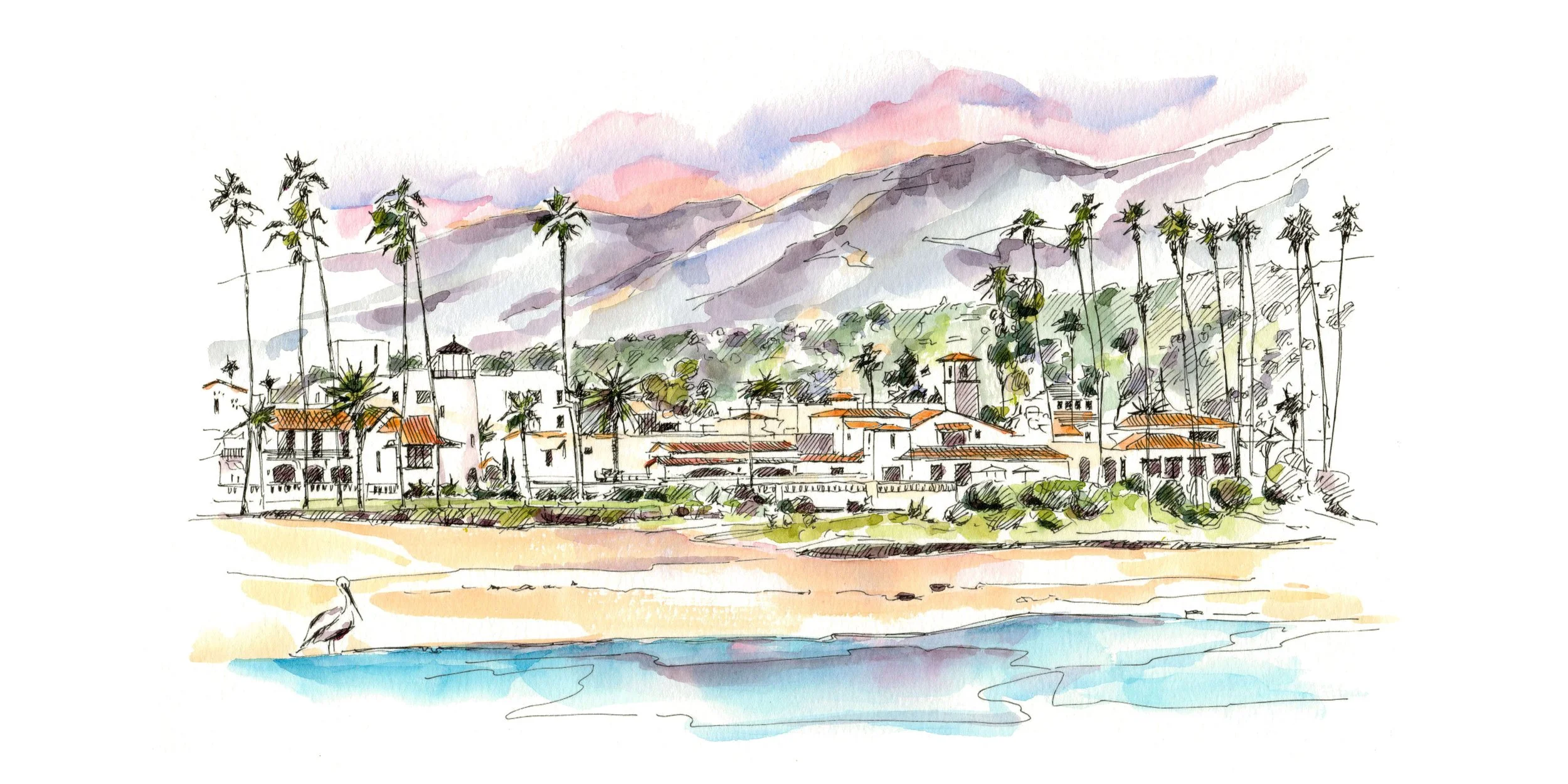 The timeless style of my work and my approach to capturing the story and spirit of place and moments in time make it well suited for a wide range of projects, from meaningful gifts and statement pieces to branding and interior design. I create both black-and-white drawings and watercolors, which have been commissioned for projects including stationery and wedding invitations, boutique hotel branding imagery, university websites, realtor closing gifts, custom interior gallery walls, personal gifts commemorating special locations and events, stand-up paddle boards, puzzles, wine bottle labels and murals. Commissioned artwork can be created either en plein air or from reference images.